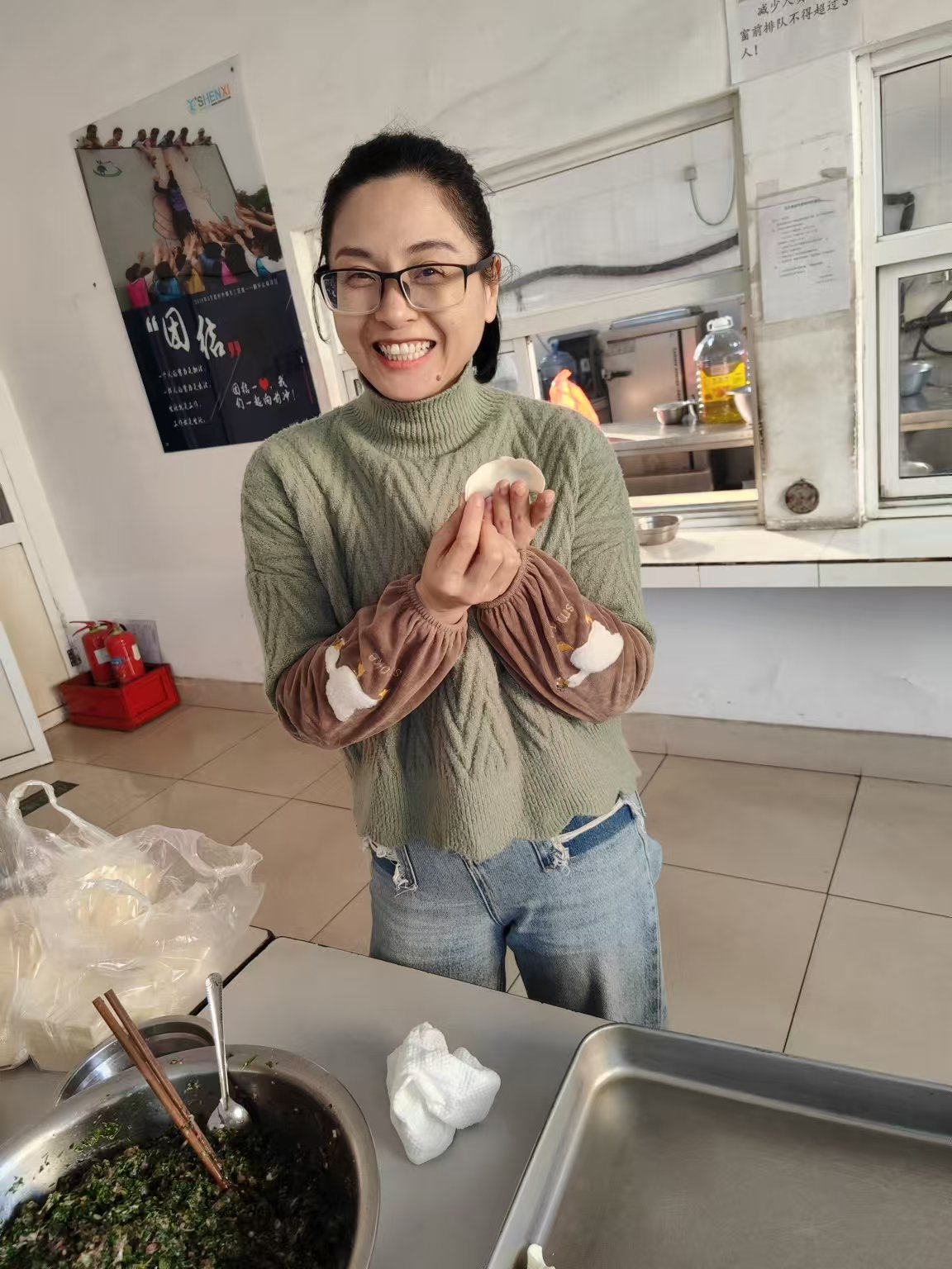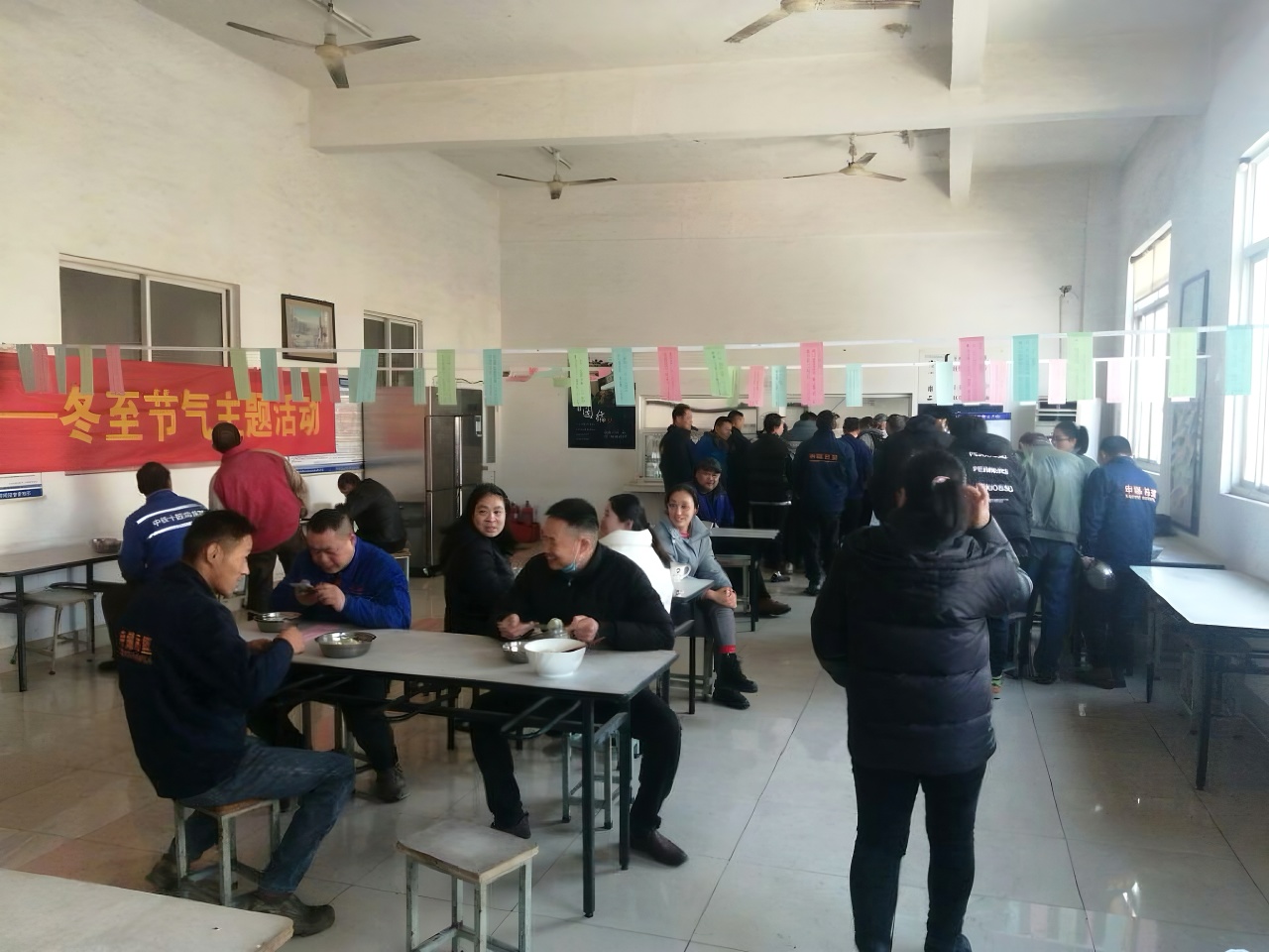我國大多數地區在冬至這天要吃餃子,因為餃子有“消寒”之意,至今民間還流傳著“冬至不端餃子碗,凍掉耳朵沒人管”的民諺,所以上午9時各員工代表全副武裝來到食堂,為大家精心包制。